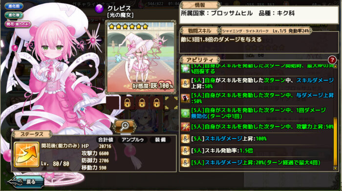 個人的に3枠目に欲しいと思っているのが、光の魔女クレピスちゃんです。