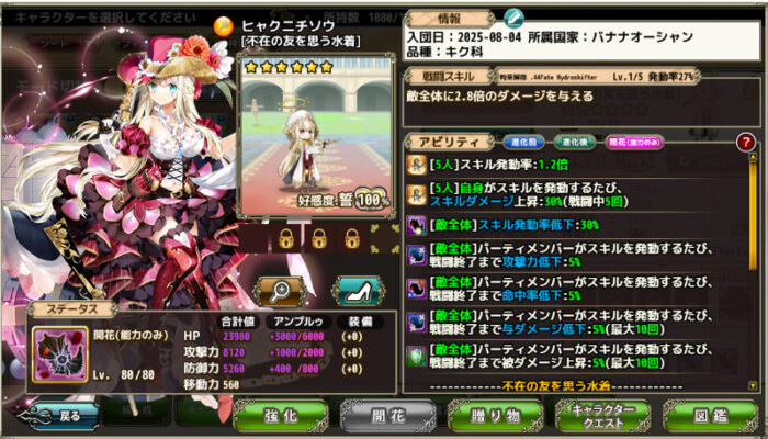 さらにターン経過でスキルダメを最大80%付与してくれる事から、他のスキルと併せて
