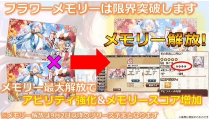 メモリー解放が始まります。(演出は花騎士の強化時と同じです)