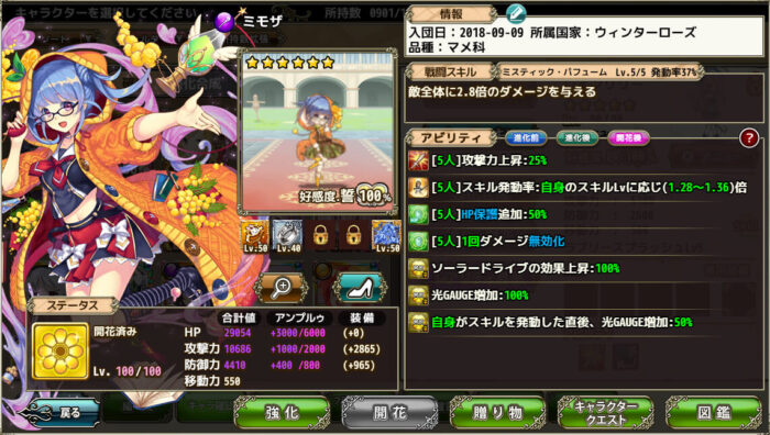 しかし、火力を重視したいならシクラメンさん(七華ver)、ゴデチアちゃん、ソヨゴちゃんが持つクリティカル率上昇アビが欲しいです。