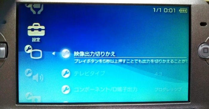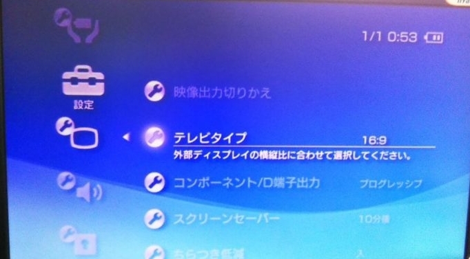代わりに、液晶モニター側にPSPの設定画面が映ります。